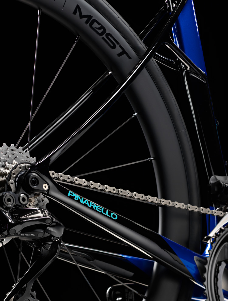 両方のペダルに掛かる推力は同じでも、チェーンを引っ張る力は右側にしか掛かりません。ピナレロは独自の解析によって、フレーム全体においてこの偏った力を補正するように最適化したデザインを取り入れています。