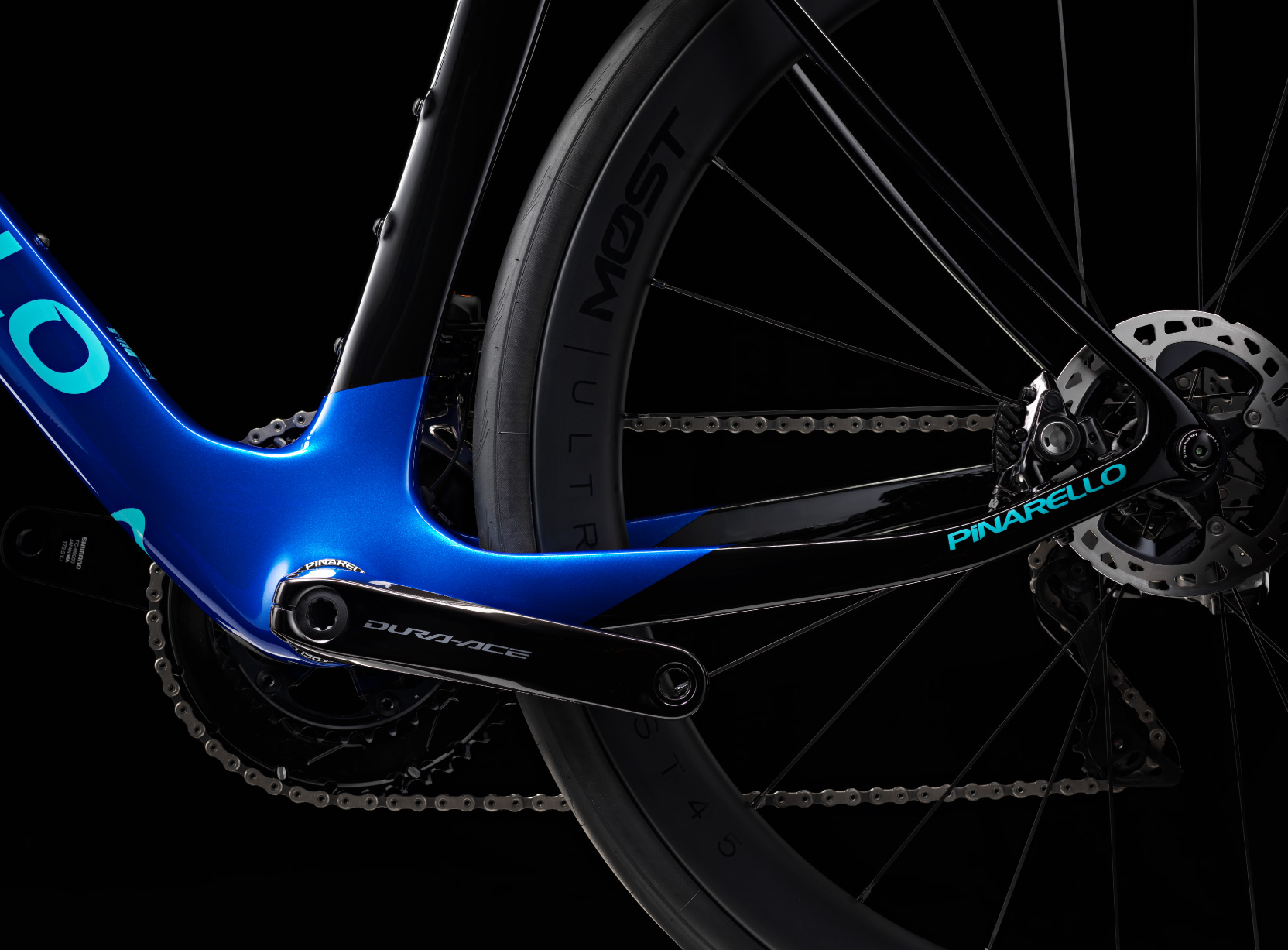 両方のペダルに掛かる推力は同じでも、チェーンを引っ張る力は右側にしか掛かりません。ピナレロは独自の解析によって、フレーム全体においてこの偏った力を補正するように最適化したデザインを取り入れています。