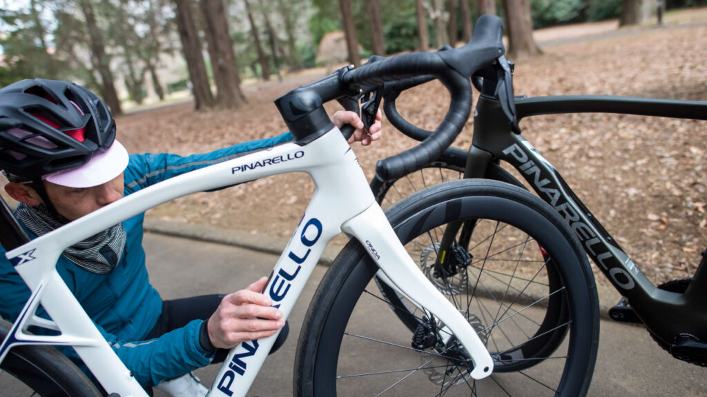 しかし2023年に発表されたドグマXで、ピナレロのエンデュランスロードは立ち位置を変える。新世代エンデュランスロードであるドグマXは、レースを前提とするのではなく、「アマチュアライダーが走りを楽しむためのバイク」となったのである。レースはドグマFに一任し、ドグマXは競争をしない。要するにピナレロは、ハイエンド帯のバイクをレースとそれ以外に切り分けたのだ。