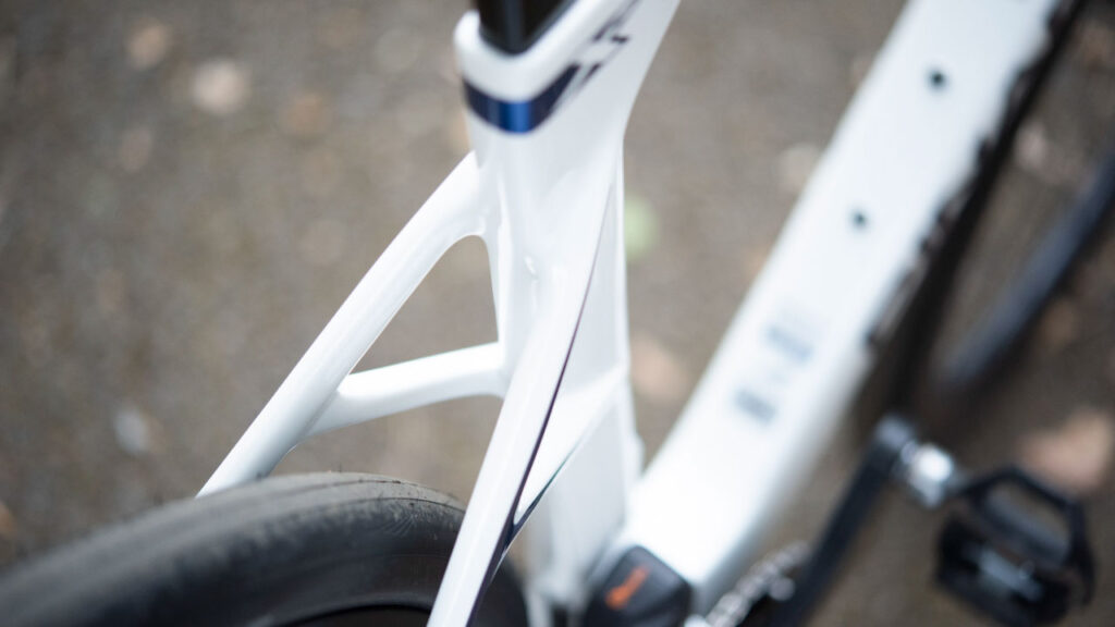 「ただ快適に」だけではなく、「快適に、かつ速く」という自転車だ。この方向性は、かつてパリ~ルーベを戦っていたコブ~ドグマKと軌を一にする。「楽に移動したいだけなら電車にでも乗ってればいいじゃないか」。エンジニアのそんな言葉が聞こえてきそうだ。