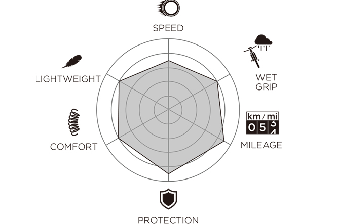 優れた転がりとグリップ、強力なグリップと耐久性など、オールラウンドなパフォーマンスに必要なすべての技術的特性がエボコンパウンドには含まれています。これらの特性の組み合わせの結果として、エボコンパウンドは、サイクリストにとって最もバランスの取れた機能を持ち最適化されています。