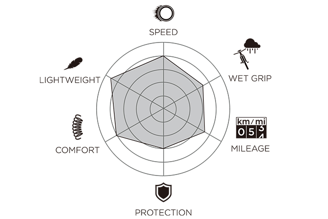 新しく開発されたコンパウンドは、3つの異なるポリマーをブレンドし、それぞれが特定の性質を発揮することで、グリップや低転がり抵抗などの相反する特性の最適なバランスを実現しました。それはスマートエボコンパウンドの優れた特性のベースとなる「SMART=賢明」な性能を特性を備えたポリマーブレンドが誕生したということです。これによりドライ/ウェットに関わらずグリップを向上させながら、低転がり抵抗で優れたハンドリング性をすべてのサイクリストに提供します。
