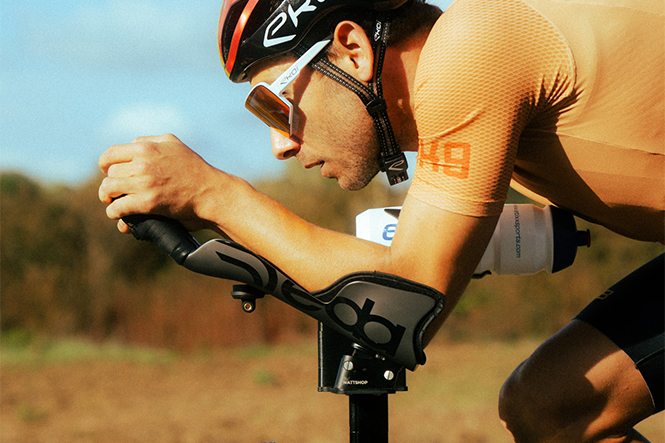 JET2 EVOは、タイムトライアルやロングディスタンストライアスロンに特化して設計・開発されたフルカーボン製エクステンションです。人間工学に基づいた一体型アームレストを採用し、幅、角度、スタックハイトを自在に調整可能です。UDフルカーボン構造で、330g(エクステンション部)という驚異的な軽さを実現しています。
