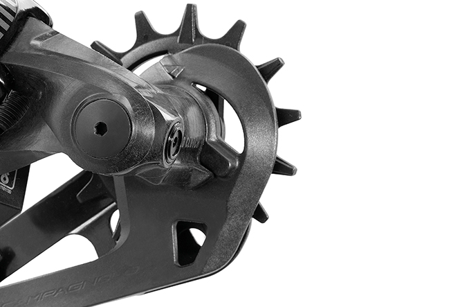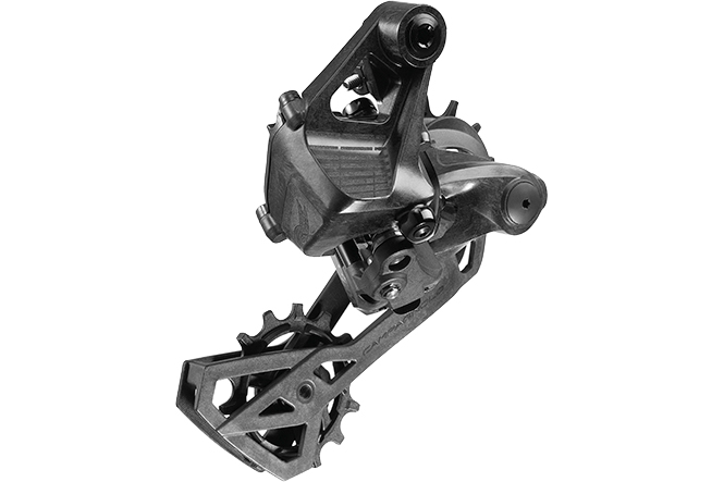 Campagnoloの卓越した設計思想は、細部にも表れています。カーボンファイバー製のインナーケージとフロントエンドにはダイレクトモールド仕上げを施し、アルマイト加工されたアルミパーツにはレーザー刻印を採用。さらにカーボンファイバー強化テクノポリマー製クラッチボディにより、荒れた路面でも高い耐久性と安定性を確保しています。