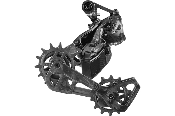 SR13をベースに開発されたこのクラッチ搭載リアディレイラーは、ロードモデルの優れた特徴をそのまま受け継いでいます。リアディレイラーがスプロケットセットの下に配置され、よりミニマルな外観と空力性能の向上、そしてプーリーとギアの完璧な位置合わせを実現。これにより、変速は一層静かで、より高精度かつ高い信頼性を発揮します。