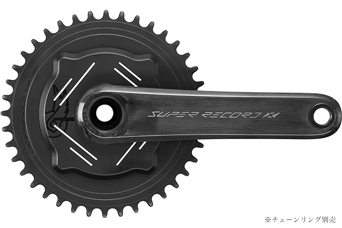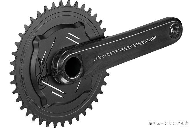 新しいSuper Record X 1X クランクセットは、剛性・効率・軽量性・エアロダイナミクスを高次元で融合させるために設計されたエンジニアリング研究の成果です。EU製造でありながら、カンパニョーロ伝統のスタイルを継承し、カーボン繊維が露出した仕上げと、外側に「Super Record X」ロゴ、内側に「X」が施された専用ブランディングを採用しています。