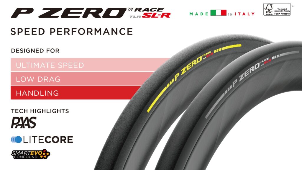 純粋なスピードを念頭に置いて開発され、空気力学的な最適化機能(PAAS:ピレリ・アドバンスド・エアロ・システム)を備えて設計されています。気流の剥離を抑え、リムのセイリング効果を最大化して、最終的に全体の空気抵抗を低減するように設計された特許出願中の技術を特徴としています。P ZERO™ Race SL-Rは、ピレリの中で最も軽量で効率的なTLR(チューブレスレディ)ケーシングである新しいLiteCore構造を導入し、非常にしなやかな乗り心地と卓越した転がり抵抗パフォーマンスを提供します。SmartEVO²コンパウンドは、ドライとウェットの両方の路面状況で優れたグリップとコントロールを保証します。スリックデザイン、微調整されたマイクロテクスチャー、統合されたエアロ機能を備えたイタリア製タイヤ。