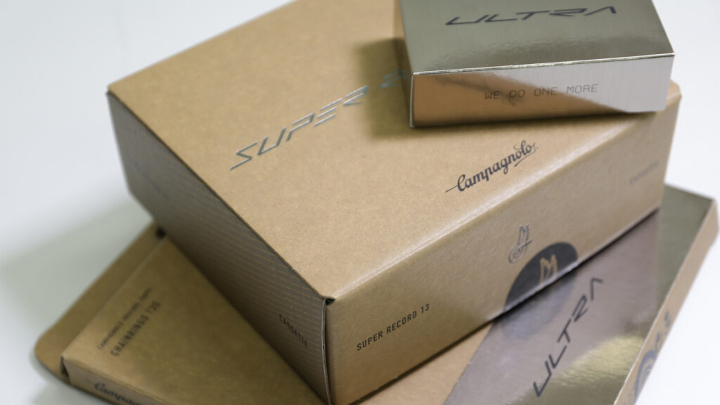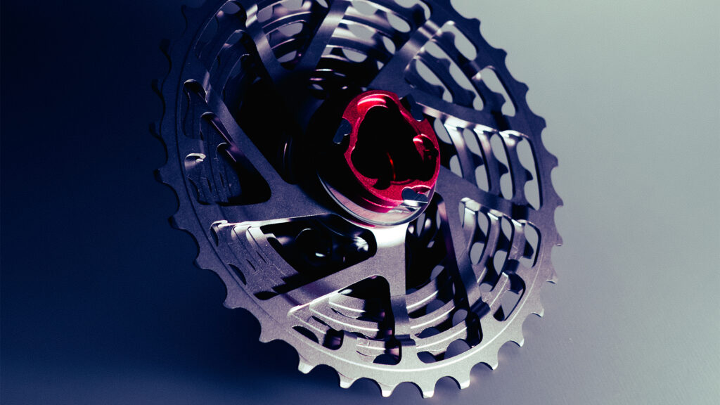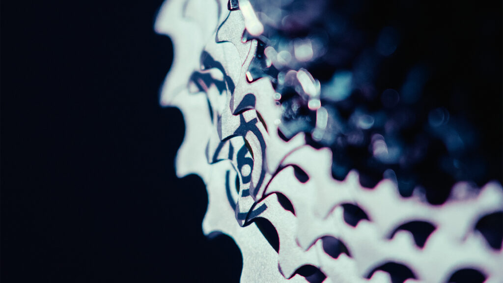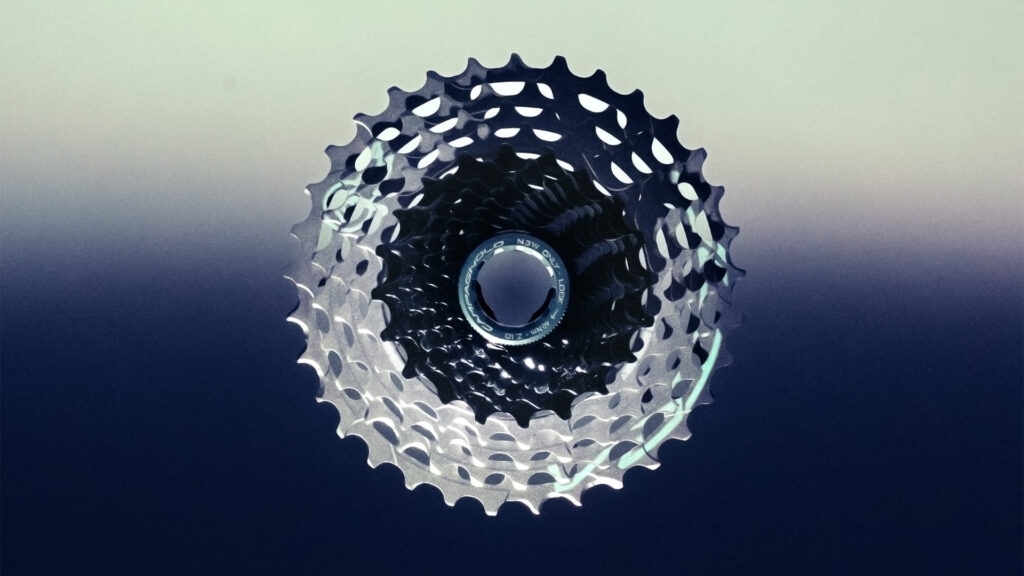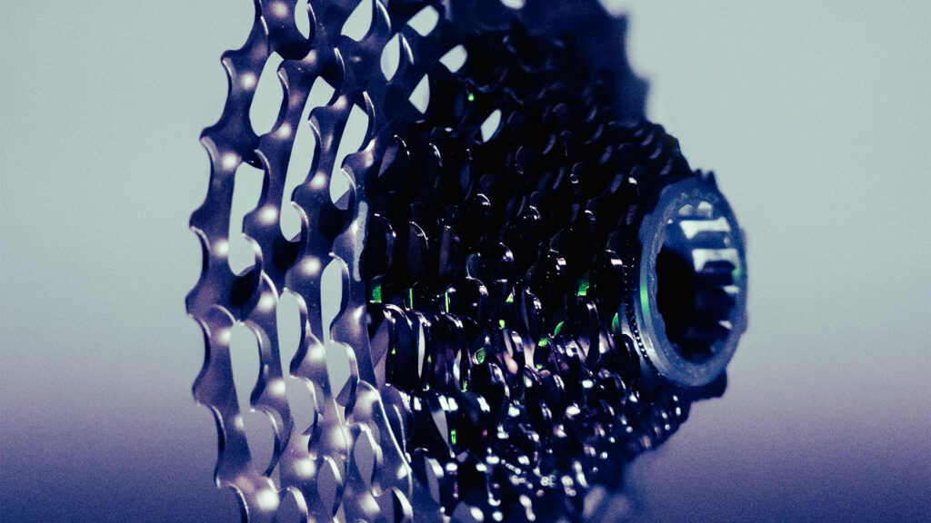 レーザー刻印グラフィックとブラッククロームフィニッシュ、チタンのナチュラルカラーのコンビネーションで、カセットそのものがグループセットの中で際立つ存在となります。単なる軽量化を目的としたものではなく、カンパニョーロの美学を体現しています。