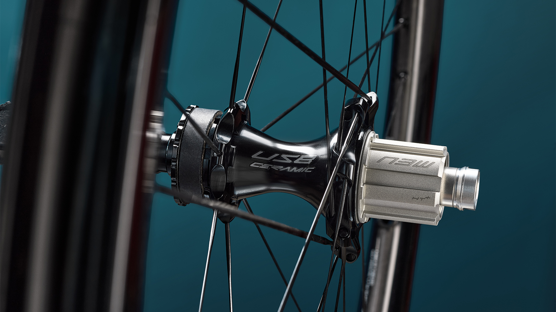 幅の広いエアロスポークと楕円形断面のスポークを組み合わせることで、乱流を抑えて空気抵抗を減らし、剛性と快適性のバランスを高めています。